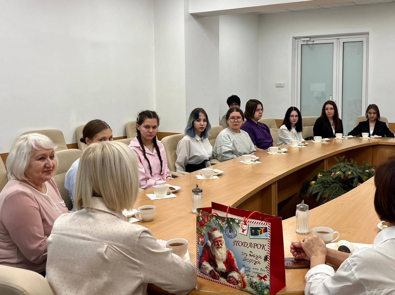 Татьяна Витальевна Гаврутенко встретилась с группой СПО первого курса специальности «Дошкольное образование», чтобы в неформальной обстановке обсудить их первые студенческие победы и трудности. За чашкой чая студенты поделились своими впечатлениями о проходящем периоде адаптации. Они рассказали, как справляются с первыми зачетами, вливаются в новый коллектив и осваиваются в стенах университета. Татьяна Витальевна с интересом слышала каждого, отметив уже достигнутые группой результаты: хорошую успеваемость, сплоченность и активное участие в культурной-творческой и спортивной жизни вуза.