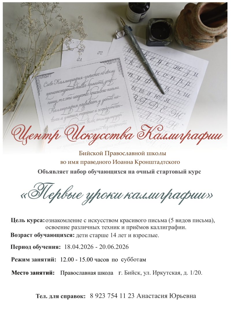 Место занятий: Православная школа г. Бийск, ул. Иркутская, д. 1/20.