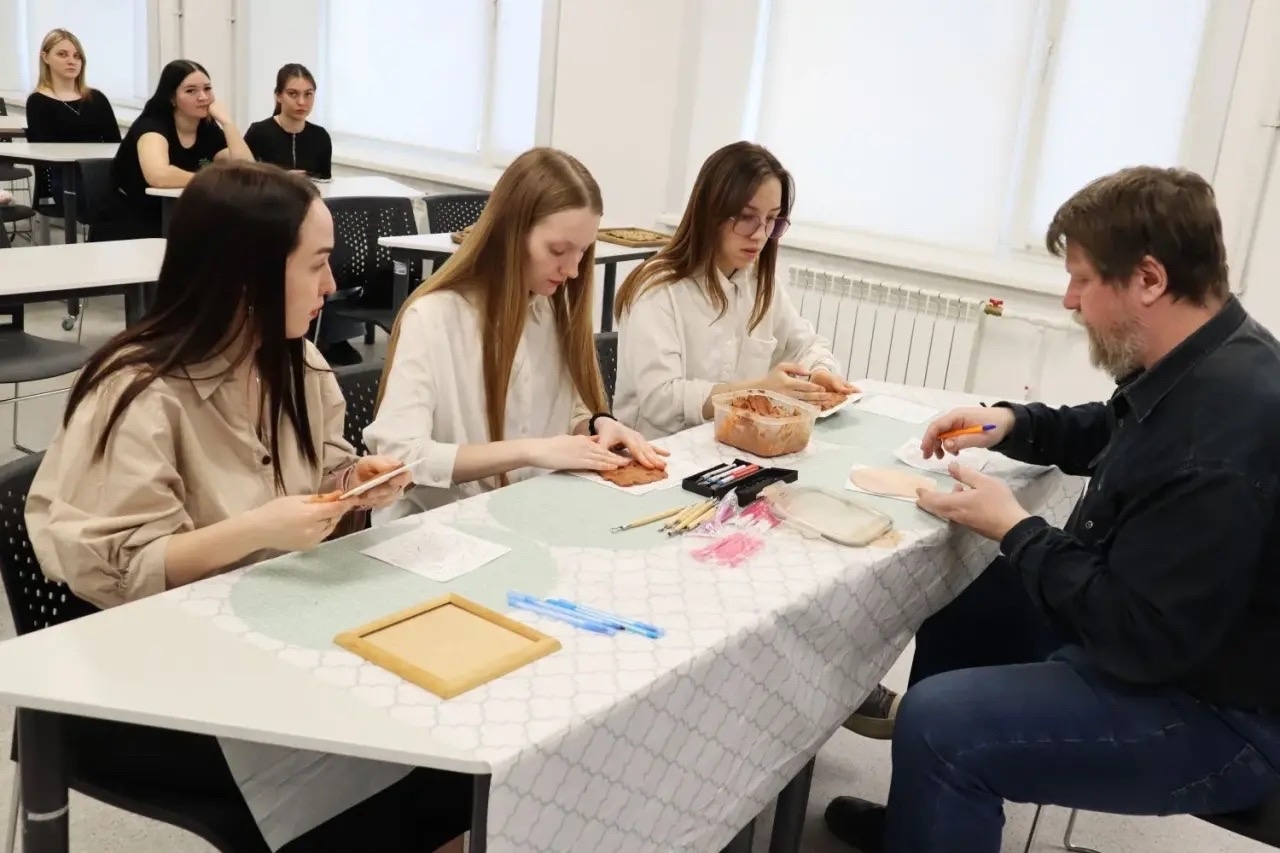 В рамках мастер-класса кандидата философских наук, доцента кафедры изобразительного искусства, технологии и дизайна, члена Союза художников России Бралгина Егора Юрьевича участники познакомились с техникой скульптурного барельефа и выполнили работу в технике быстрого нанесения.
