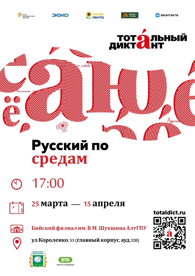 В Университете Шукшина стартует курс подготовки «Русский по средам» для всех, кто хочет написать Тотальный диктант на отлично! На занятиях вы: