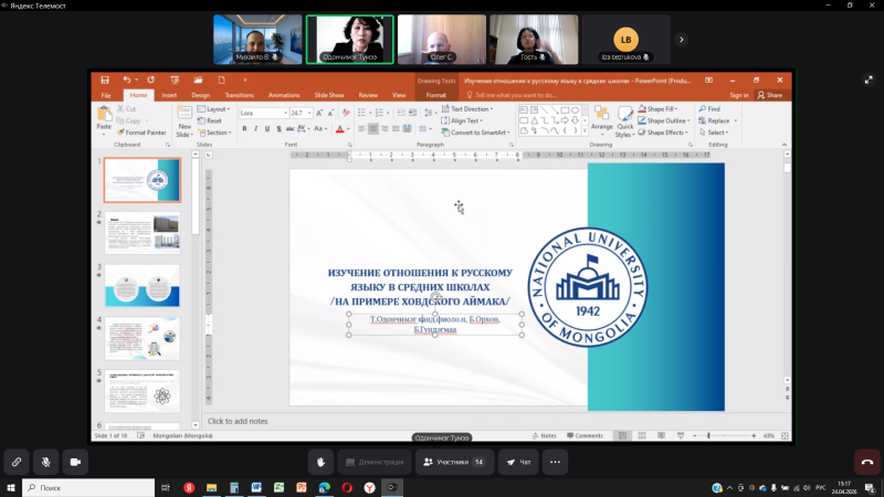 Значительный интерес вызвало участие иностранных исследователей. К онлайн-конференции подключились студенты и ученые из Западного регионального филиала Монгольского государственного университета (г. Ховд, Монголия), Монгольского государственного университета образования (Улан-Батор, Монголия), Гуандунского университета иностранных языков и международной торговли (Гуанчжоу, Китай), Университета Принца Сонгкхлы (Пхукет, Таиланд), Белорусского государственного университета, Белорусского национального технического университета (Минск, Беларусь), Кыргызско-Узбекского Международного университета им. Батыралы Сыдыкова (Ош, Кыргызстан), Казахского национального медицинского университета (Алматы, Казахстан), Туркменского государственного университета имени Махтумкули (Ашхабад, Туркменистан), а также медицинских университетов Курска, Уфы и Минска.